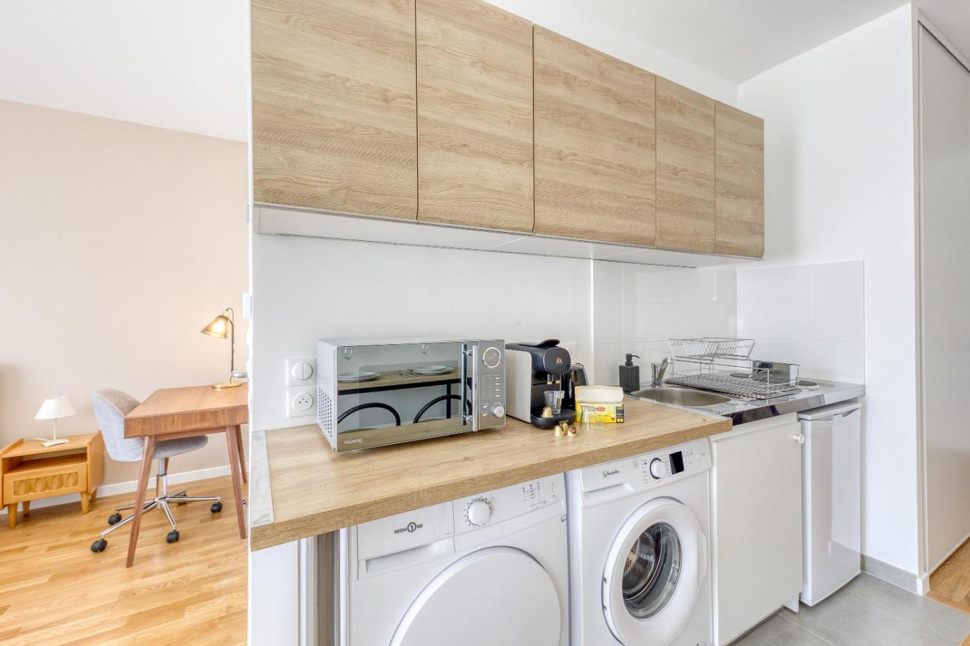 Appartement 1 Chambre. Boasting a private entrance, this apartment features a kitchenette, 1 bedroom and 1 bathroom with a bath and a hairdryer. The kitchenette features a refrigerator, kitchenware and a microwave. The apartment features a washing machine, soundproof walls, a tea and coffee maker, a flat-screen TV with cable channels, as well as ancourtyard view. The unit has 1 bed.