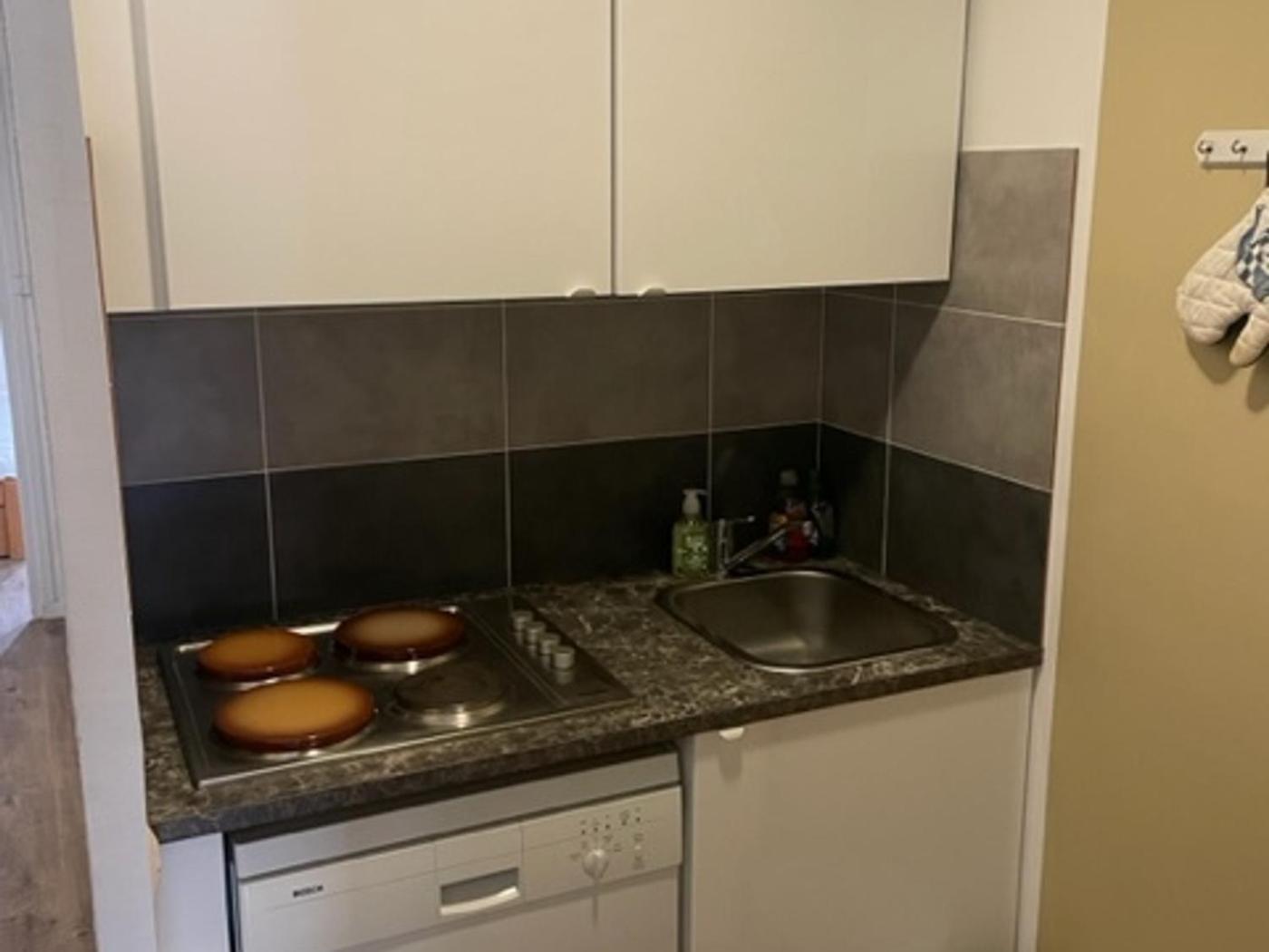 Appartement (5 Adultes). Featuring a private entrance, this apartment also is comprised of 1 separate bedroom, 1 bathroom, a living room and a kitchen. The fully equipped kitchen features a refrigerator, a dishwasher, kitchenware and a microwave. This apartment offers a dining area and a TV. The unit offers 3 beds.